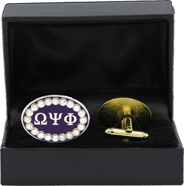 Omega Psi Phi (OPP) 7/8"W Clear Austrian Crystal Cuff links In Leatherette Box