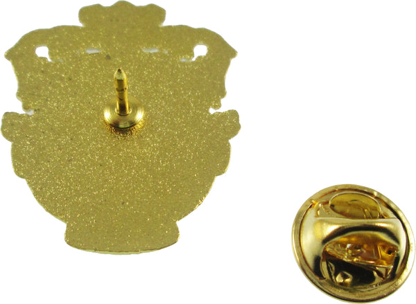 1 1/8"T Kappa Kappa Psi (KKP) Die Struck Shield Lapel Pin. Each pin is die struck, gold plate over brass, with enamel colors. They measure 1 1/8" in height and come with a butterfly clutch back.