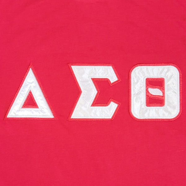 DST Red Ringer Tee with Sewn Satin Tackle Twill Letters 65% Cotton/35% Polyester Blend with Contrasting Collar and Sleeves.