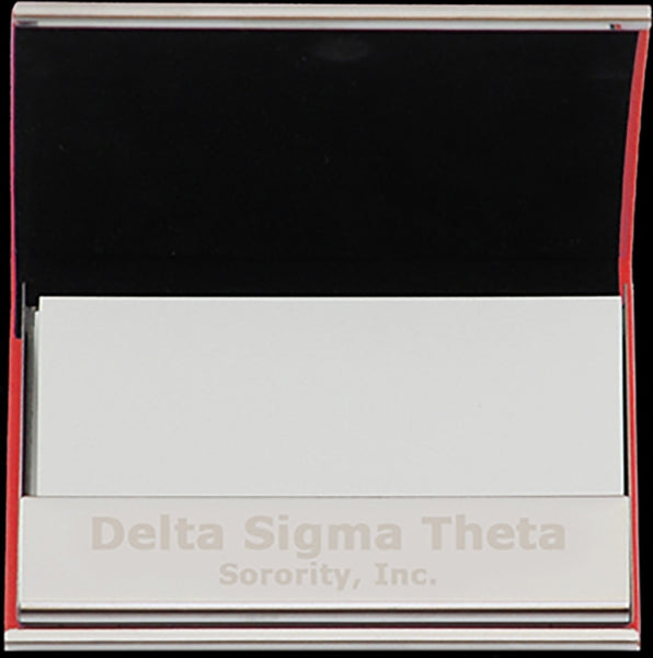 Delta Sigma Theta Stainless Steel Business Card Holder With Leather [Red]