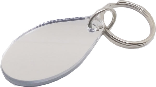 This Pear/Tear Drop Shaped Domed Key Chain is made of an acrylic plastic material with a metal key ring. The domed acrylic piece with Greek Letters is attached on top of a pear/tear drop shaped acrylic mirror base. The acrylic piece is 2.25 inches in length.