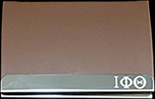 Iota Phi Theta Stainless Steel Business Card Holder With Leather [Brown]