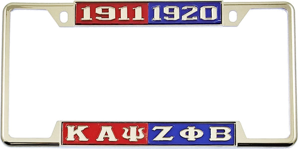 This chrome-plated, die-cast metal Split License Plate Frame features colored acrylic inserts with a mirrored, reflective surface for 2 organizations. The text on each frame is laser-cut and embedded into the acrylic. Designed to fit all standard U.S. license plates, the frame includes two top holes for screws and two metal tabs at the bottom for securing the plate. If your license plate has decals at the bottom, this version is ideal, as it includes cutouts specifically designed to accommodate them.