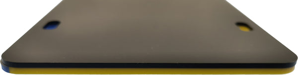 This 2 Group License Plate is made with a hard acrylic plastic base and a tough top layer of 2 split acrylic pieces in contrasting colors. Cutout acrylic Greek letter/symbol pieces from two organizations are attached to the top layer for a raised, 3D effect. There are 2 holes at the top and 2 holes at the bottom of the License Plate for screws.