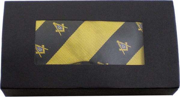 Mason Imitation Silk Bow Tie & Handkerchief Set Black/Gold