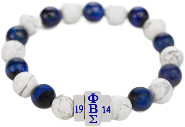 Phi Beta Sigma (PBS) Natural Stone Bead Bracelet - Blue & White